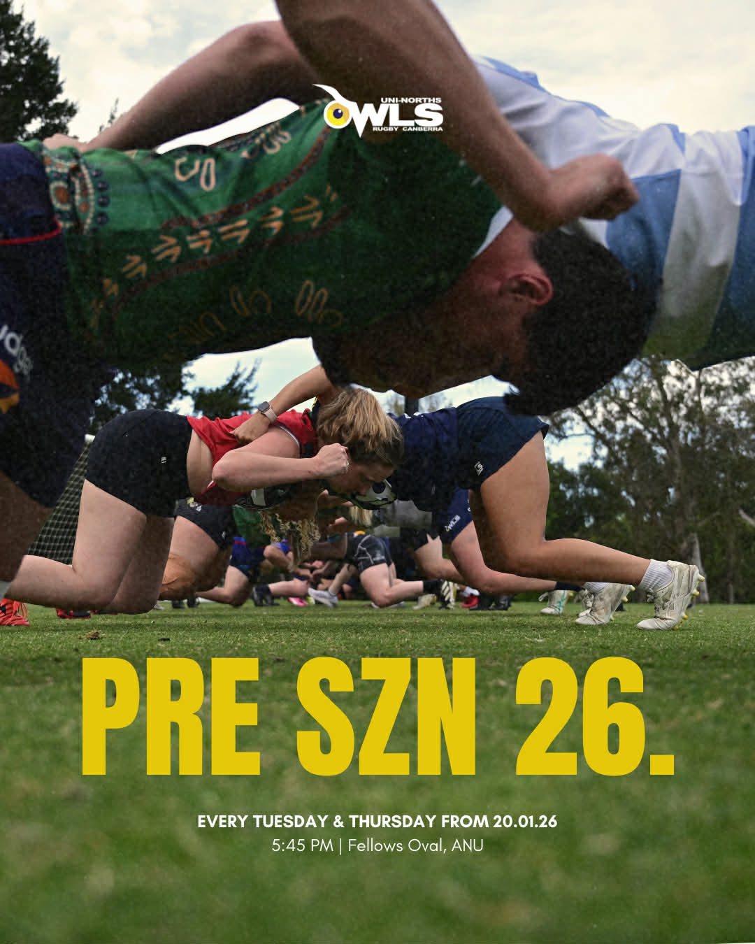 Pre-season for the Uni-Norths Owls is officially back, with preparations for the 2026 season kicking off on Tuesday 20 January. Training will run every Tuesday and Thursday from 5:45pm at Fellows Oval, ANU, as the club comes together to lay the foundations for another big year ahead. With all grades returning to the paddock, pre-season is about building fitness, sharpening skills and reconnecting as one club after a strong 2025 campaign. Whether you’re a returning Owl, new to the club, or looking to pull the boots back on for another season, everyone is welcome as we set the tone early...
